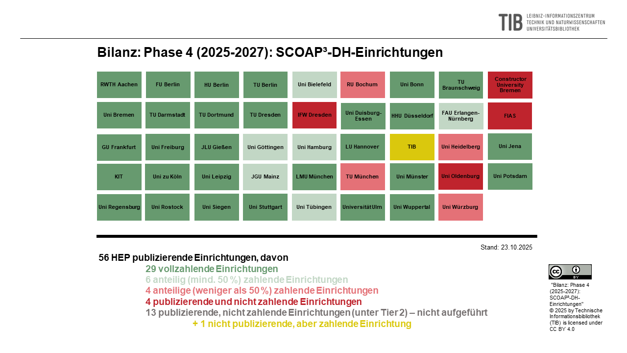 Die folgende Grafik zeigt die Beteiligung der deutschen Hochschulen in der Phase 4 von SCOAP³ (2025-2027):